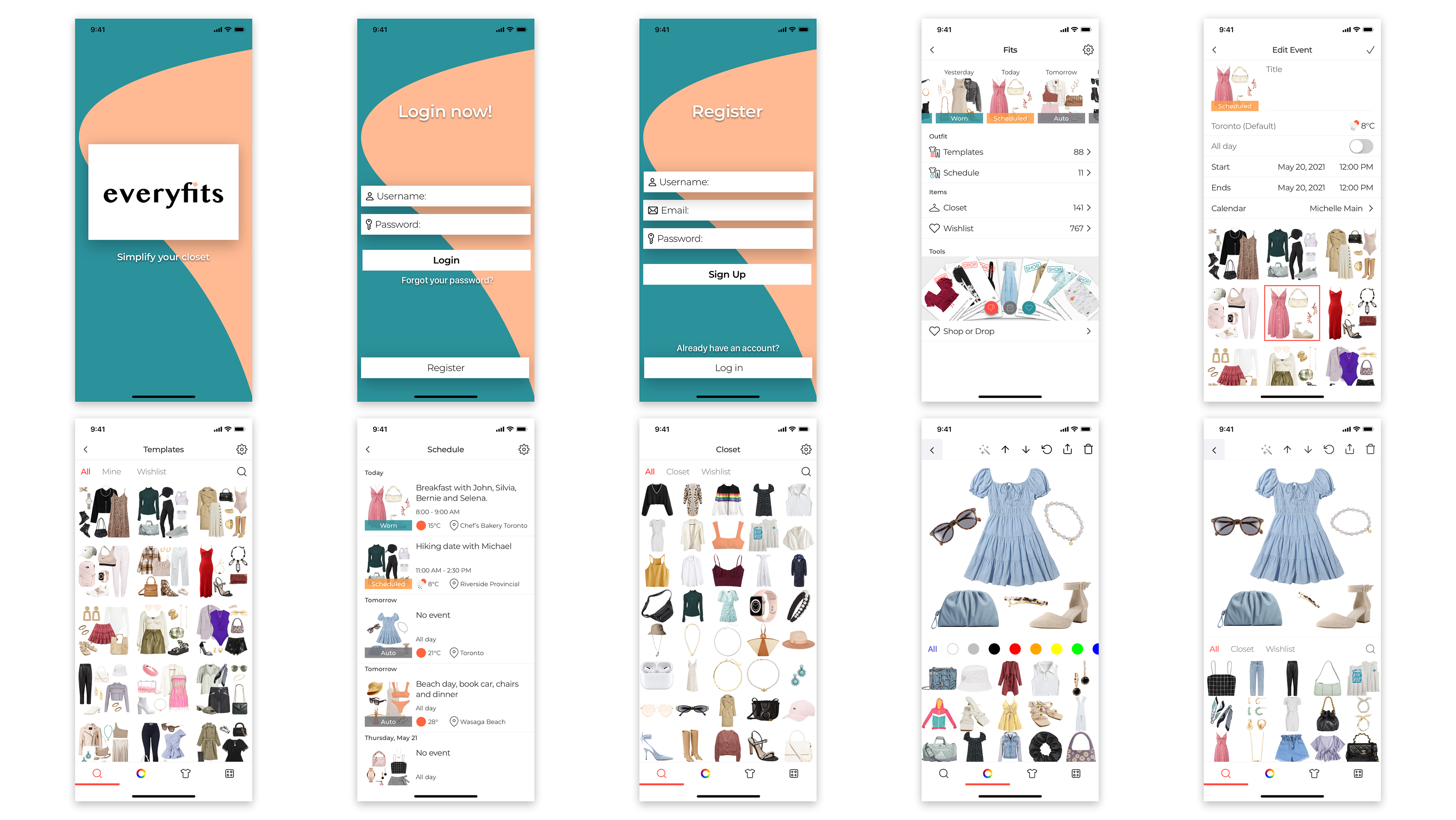 Users could then create outfits by grouping multiple items on a canvas, then schedule when to wear them using the calendar function. Using algorithms based on colour theory, the weather, layering and type of clothing, the app would suggest items either from your existing closet or items available for purchase to complete the perfect look. This project was abandoned during early stages of development.